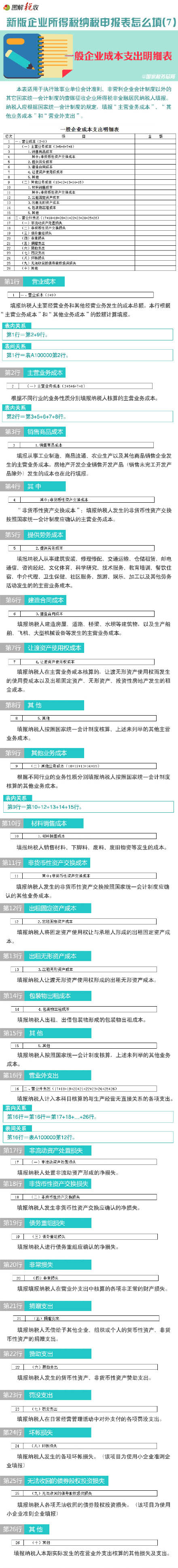 2015年(2014年度)企業所得稅納稅申報表填寫方法(7):一般企業成本支出明細表